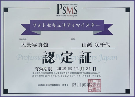 フォトセキュリティーマイスターを取得していることをお知らせいたします。